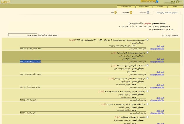 - بعد از انجام جستجو پنجره زیر باز می شود که روی قسمت “کتابهای فارسی” کلیک می کنید تا کتابهای مورد نظر نمایش داده شود: